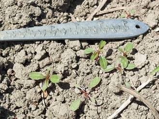 L’amarante tuberculée (AMATU) commence à émerger au Québec, notamment en Montérégie, où elle a été observée. Il importe donc de surveiller cette mauvaise herbe lors de vos dépistages. Elle est présentement entre le stade cotylédons et 2 feuilles.