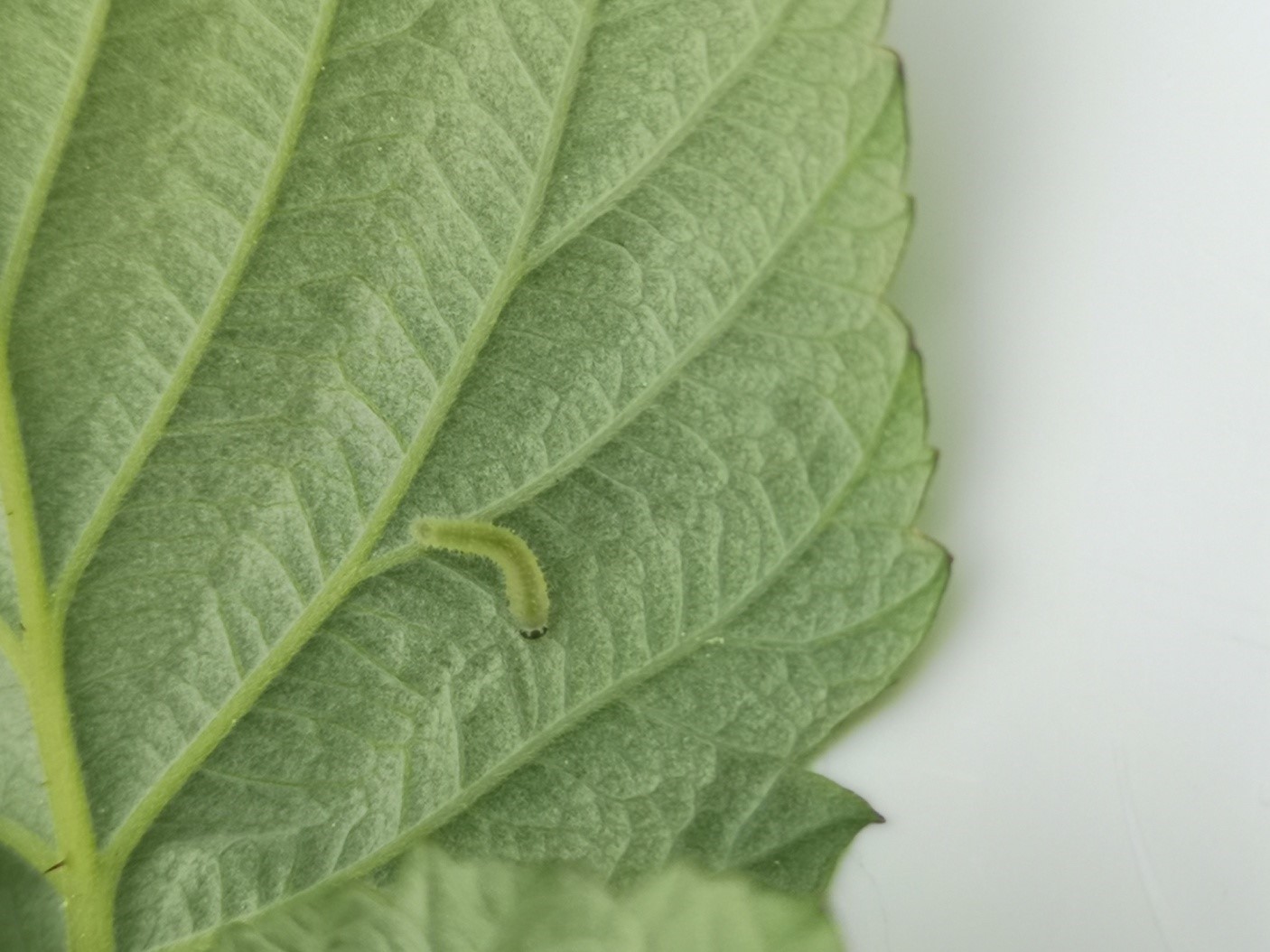 Larve de tenthrède sous une feuille de framboisier Killarney, 21 mai 2025
