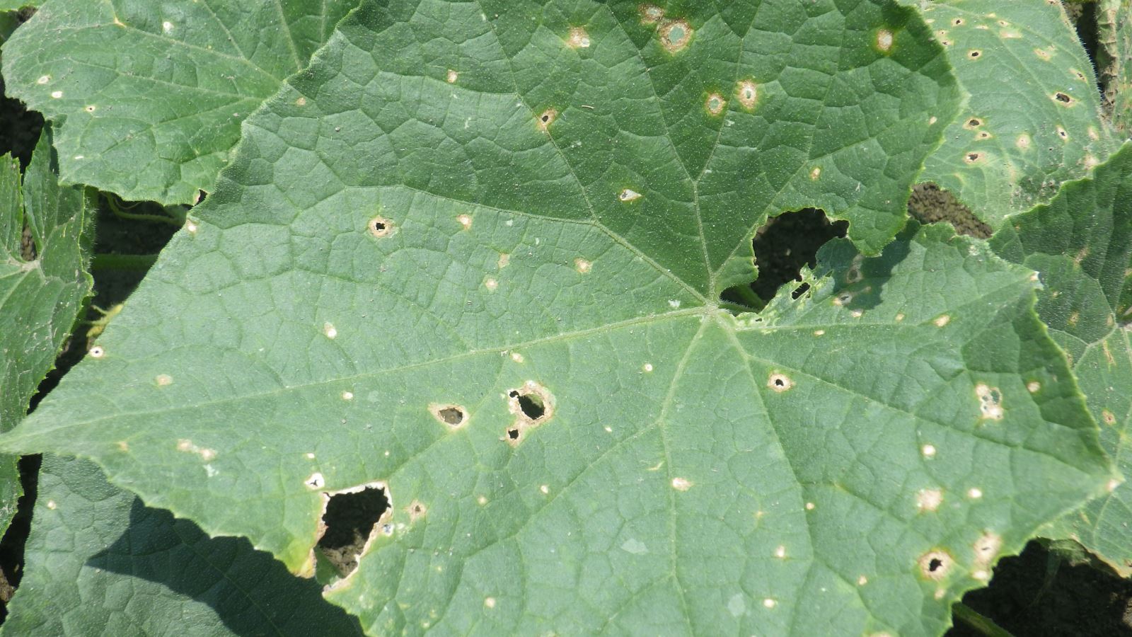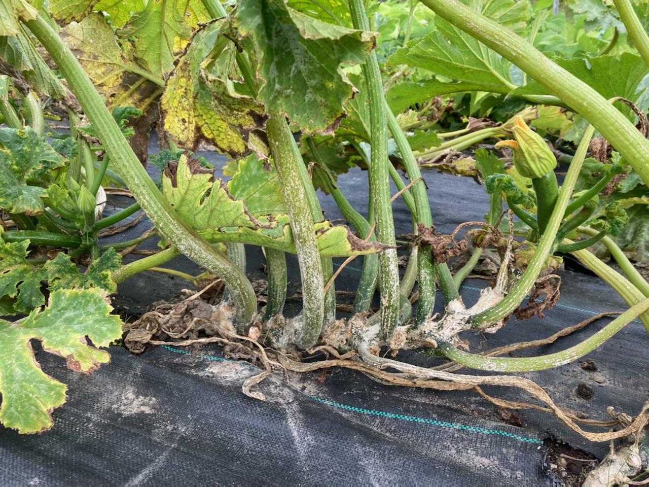Des foyers de tache plectosporienne (Plectosphaerella cucumerina/Plectosporium tabacinum) ont été dépistés dans la courgette en Estrie et en Montérégie. Plectosporium tabacinum est un champignon commun dans les sols et sur le matériel végétal en décomposition. Les souches pathogènes peuvent se maintenir sur les résidus de culture et survivre quelques années dans le sol en absence d’hôte. Les spores de P. tabacinum entrent en contact avec leurs plantes hôtes par les éclaboussures d'eau et par le vent.