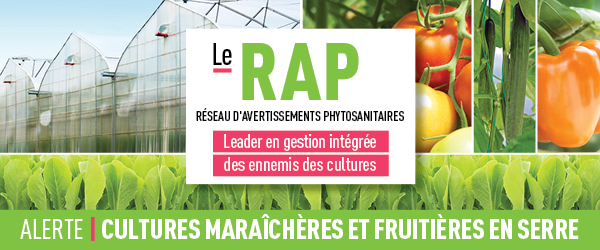 Cette alerte a été rédigée par Carlos Baez, agronome, M. Sc., Dany Boudreault, T.P. (Climax Conseils) et Isabelle Fréchette, agronome (MAPAQ). Pour des renseignements complémentaires, vous pouvez contacter les avertisseurs du sous-réseau Cultures maraîchères et fruitières en serre ou le secrétariat du RAP. Édition : Marianne St-Laurent, agr., M. Sc. et Sophie Bélisle (MAPAQ). La reproduction de ce document ou de l’une de ses parties est autorisée à condition d’en mentionner la source. Toute utilisation à des fins commerciales ou publicitaires est cependant strictement interdite.