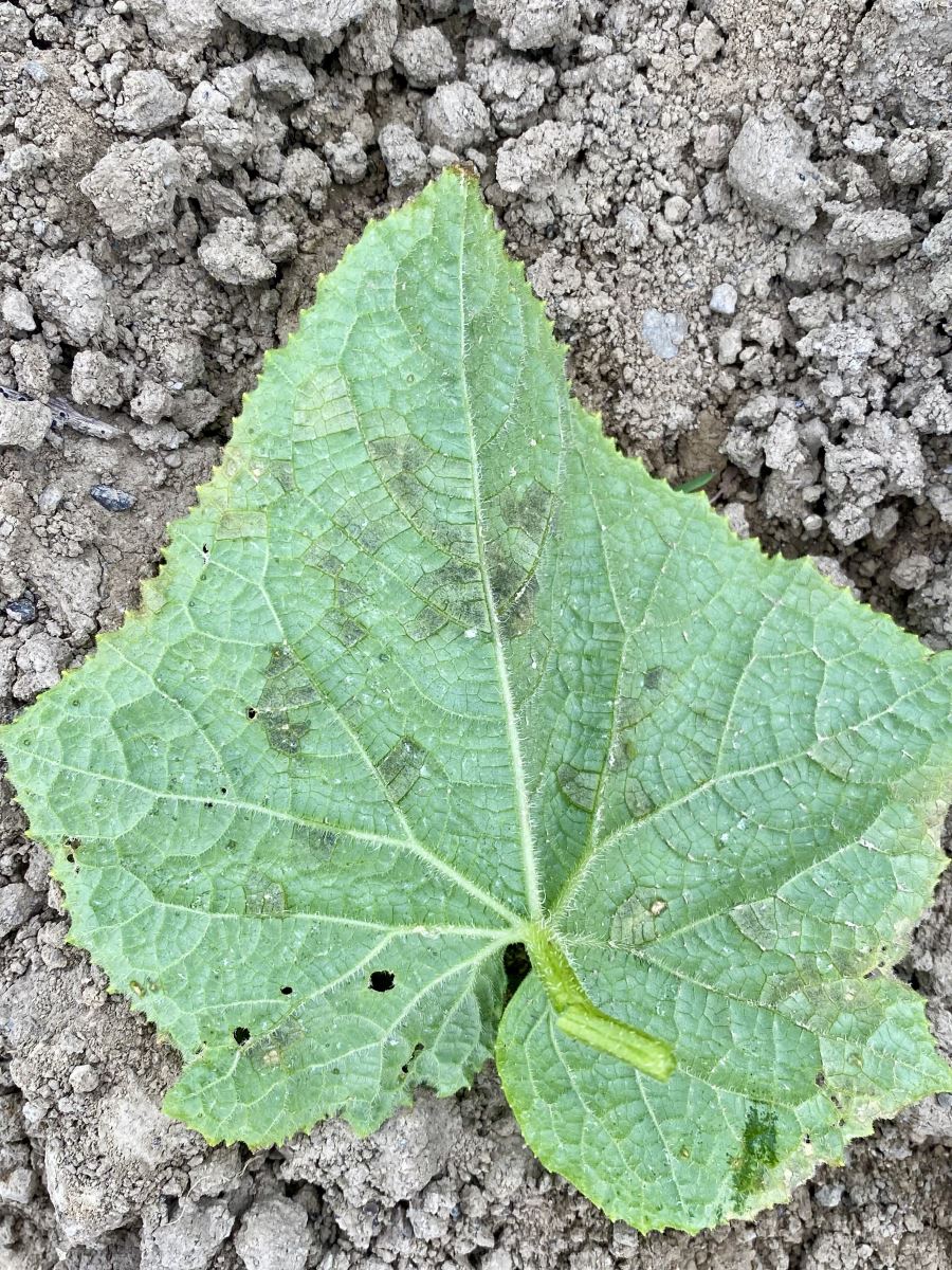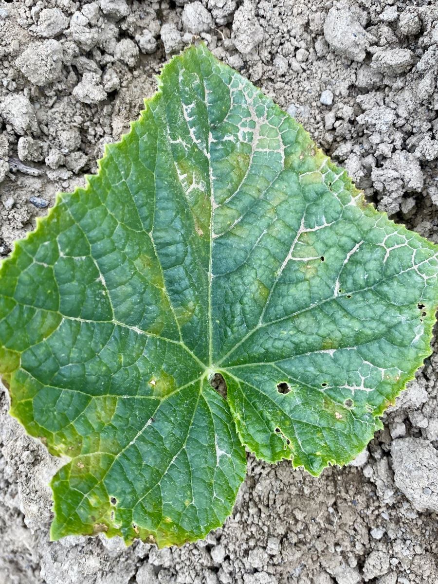 On nous signale davantage de thrips (Thrips tabaci) cette année sous les feuilles de cucurbitacées, dans le concombre et dans les courges en particulier. Normalement, leur présence ne justifie pas de traitement. Vérifiez cependant que les insectes ne se trouvent pas à la surface des fruits où ils pourraient provoquer des dégâts d'alimentation, particulièrement sur les courges qui pourraient être entreposées après la récolte.