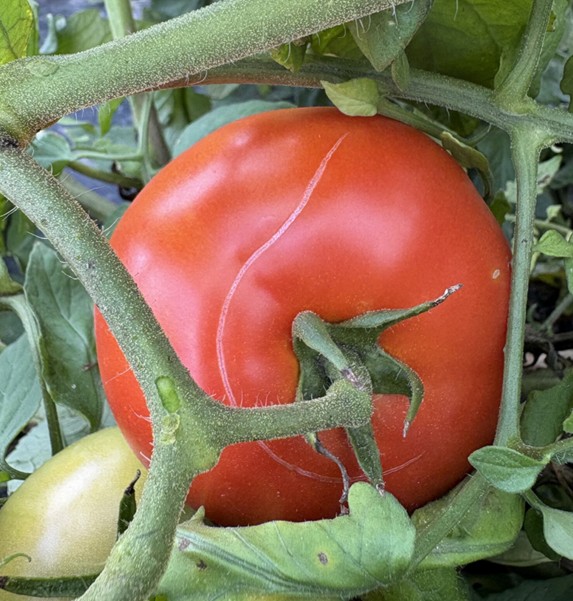 Des cas de fentes de croissance sont rapportés en Montérégie. Ce phénomène se produit quand le fruit reçoit soudainement beaucoup d'eau (fortes pluies, irrigation abondante) après une période sèche. Cela le fait gonfler trop vite, et son épiderme, qui ne suit pas la croissance, se fissure. Plus le fruit est avancé en maturité, plus il est vulnérable à ces fissures. Pour réduire le risque d'apparition de fentes de croissance, choisissez des variétés moins sensibles et assurez un apport en eau uniforme afin de maintenir l’humidité du sol aussi constante que possible. Une fertilisation adéquate, notamment un apport suffisant en calcium, peut aussi aider.