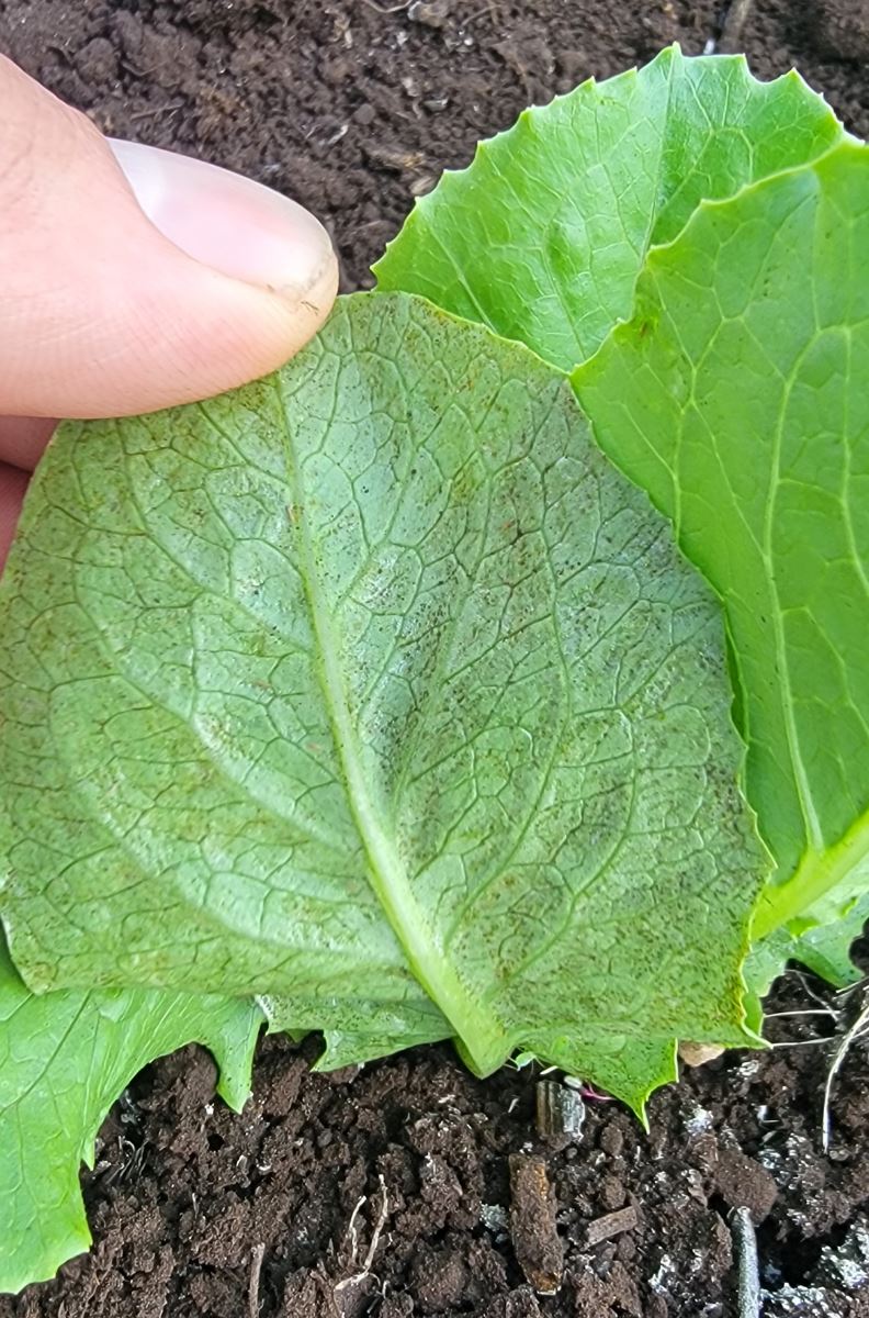 Thrips observés sur la face inférieure d’un jeune plant de laitue romaine et