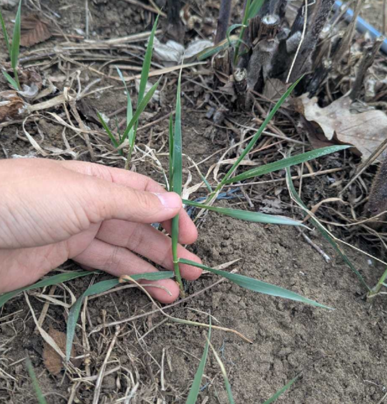 Stade 2 à 3 feuilles du chiendent en Mauricie, le 28 avril 2026