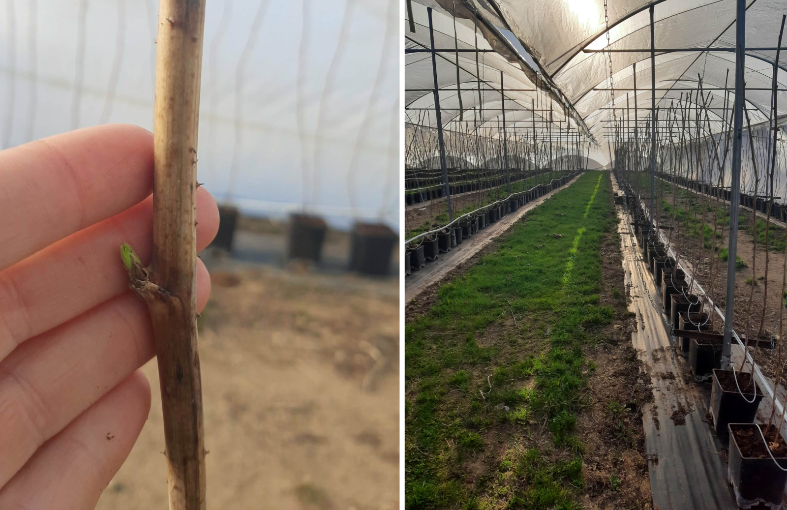 Stade « pointe verte » du cultivar 'Tulameen' en hors-sol et sous tunnel, le 28 avril 2026 en Montérégie